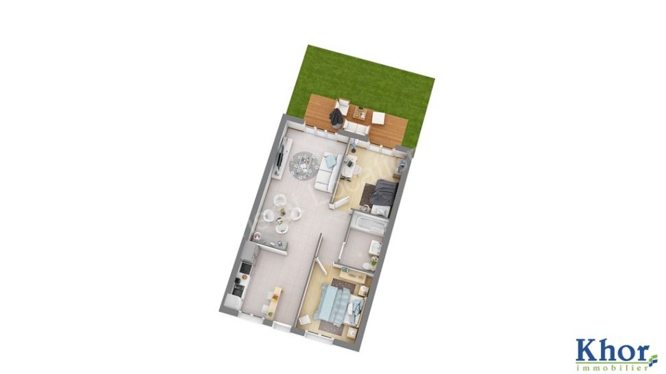 Cappelle La Grande: Programme neuf. Plain pied de 70m² semi mitoyen comprenant : hall, belle pièce de vie avec cuisine ouverte, salle de bains, wc, 2 chambres, parking privatif et jardin sud.